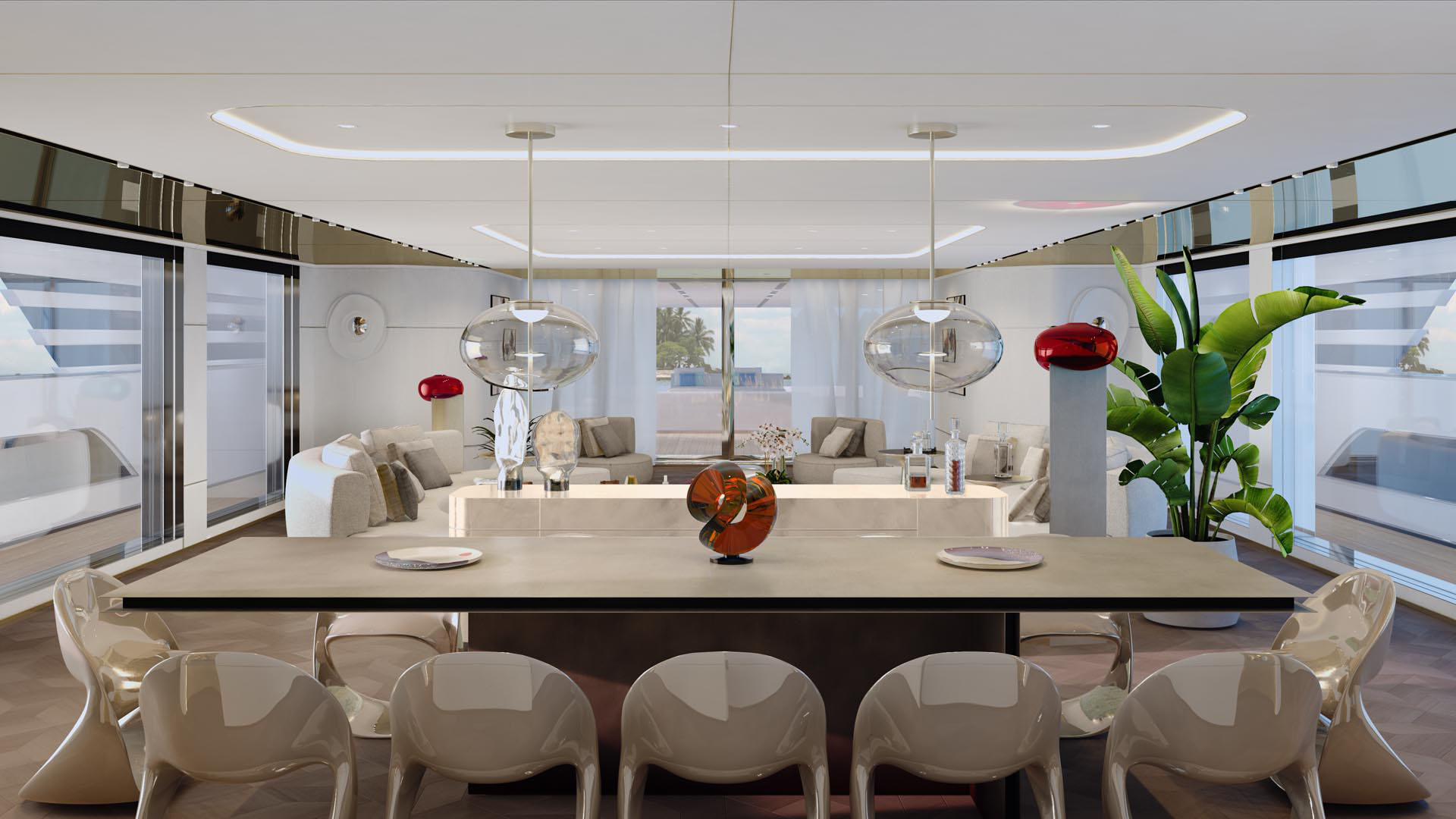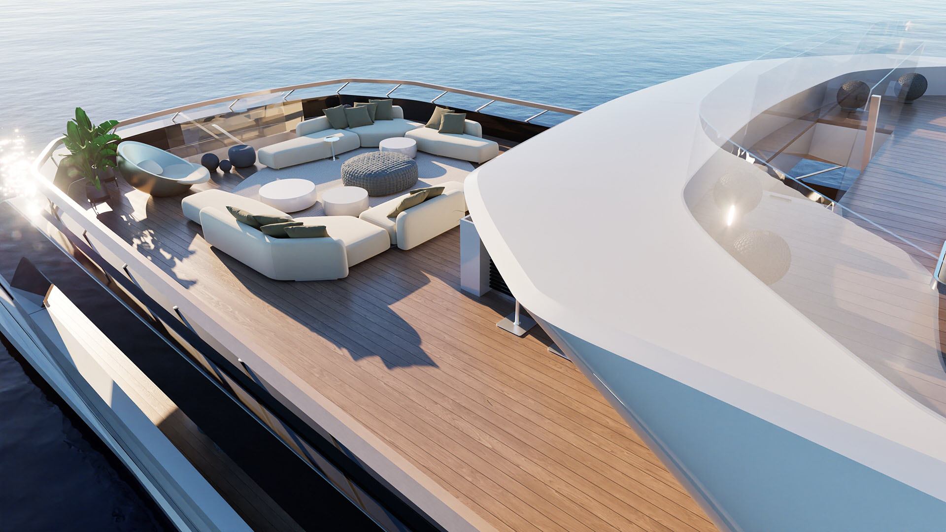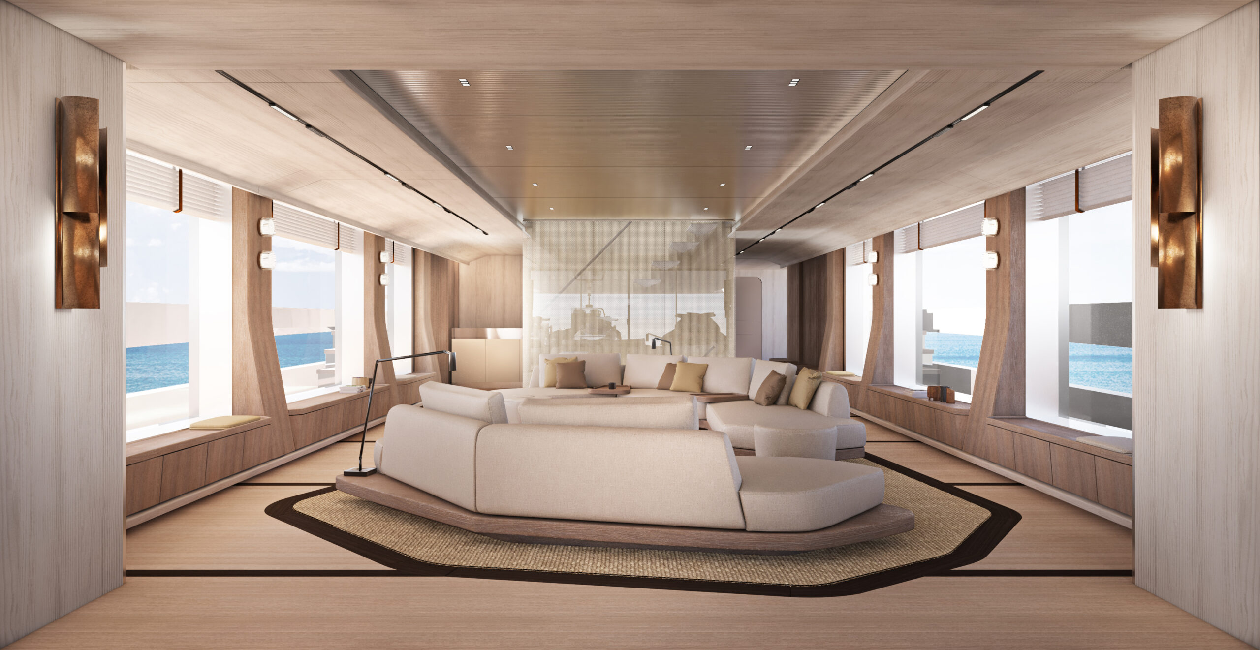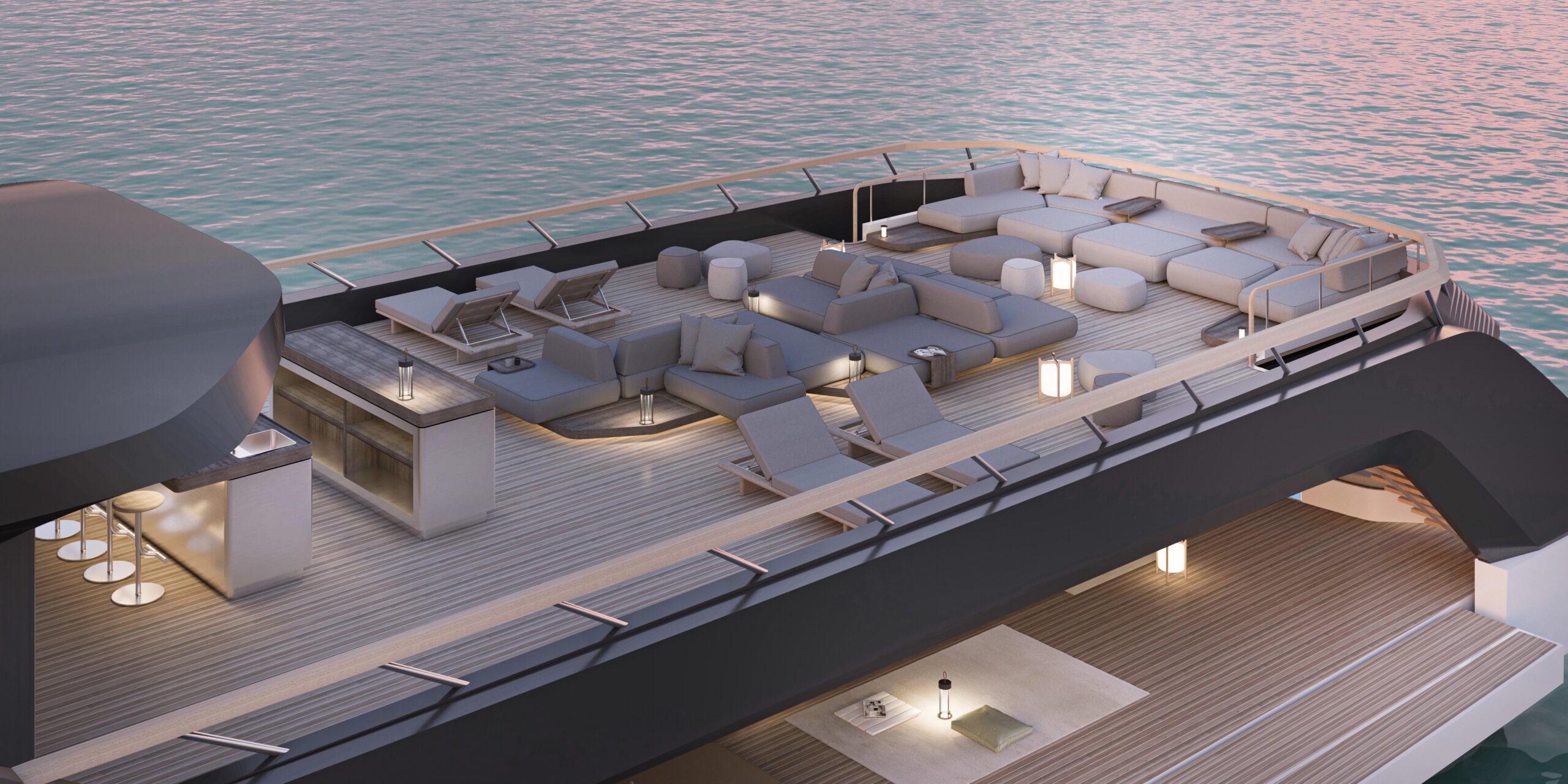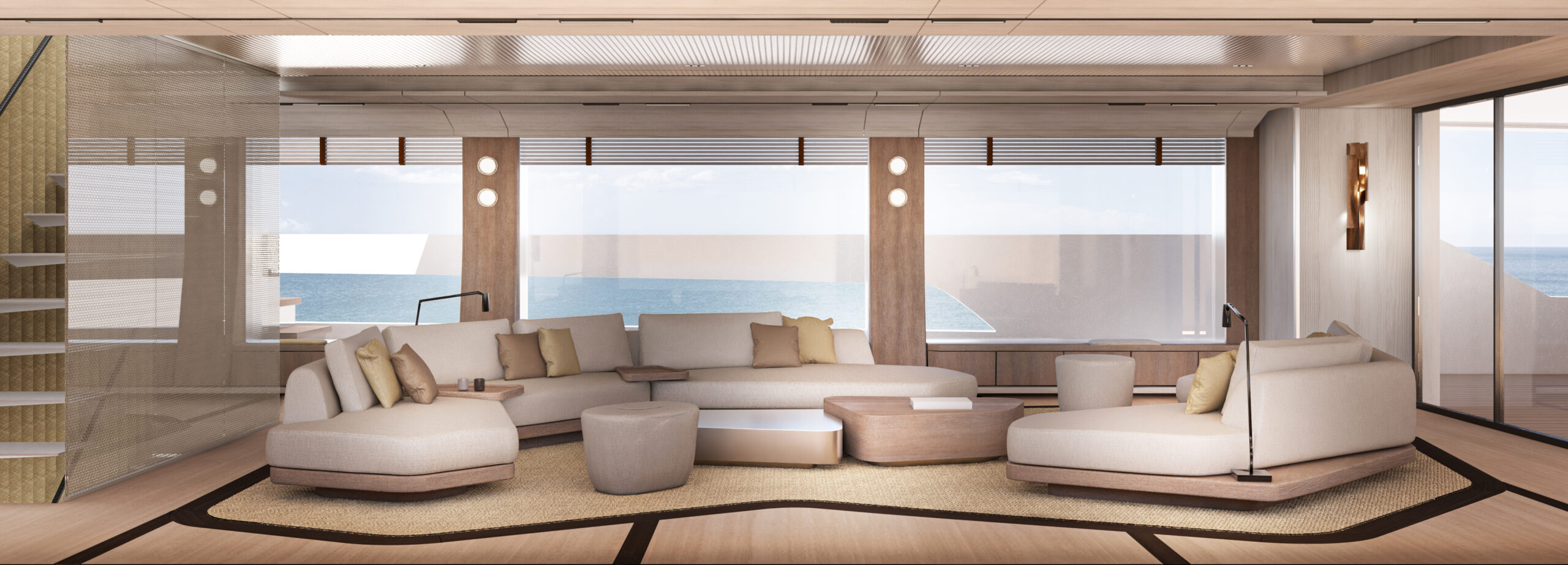 The upper and main decks showcase two large terraces overlooking the sea and communicating with each other.