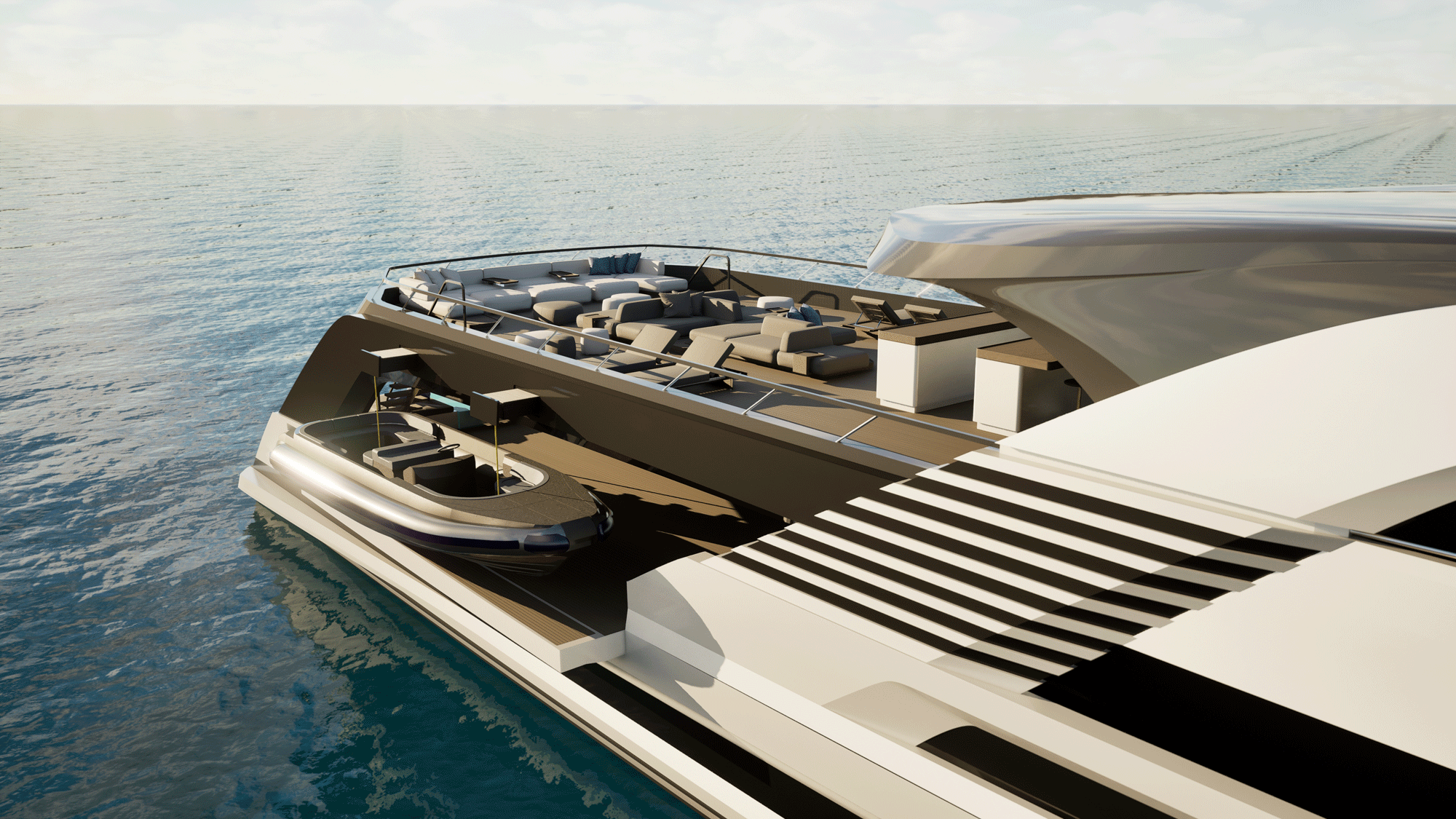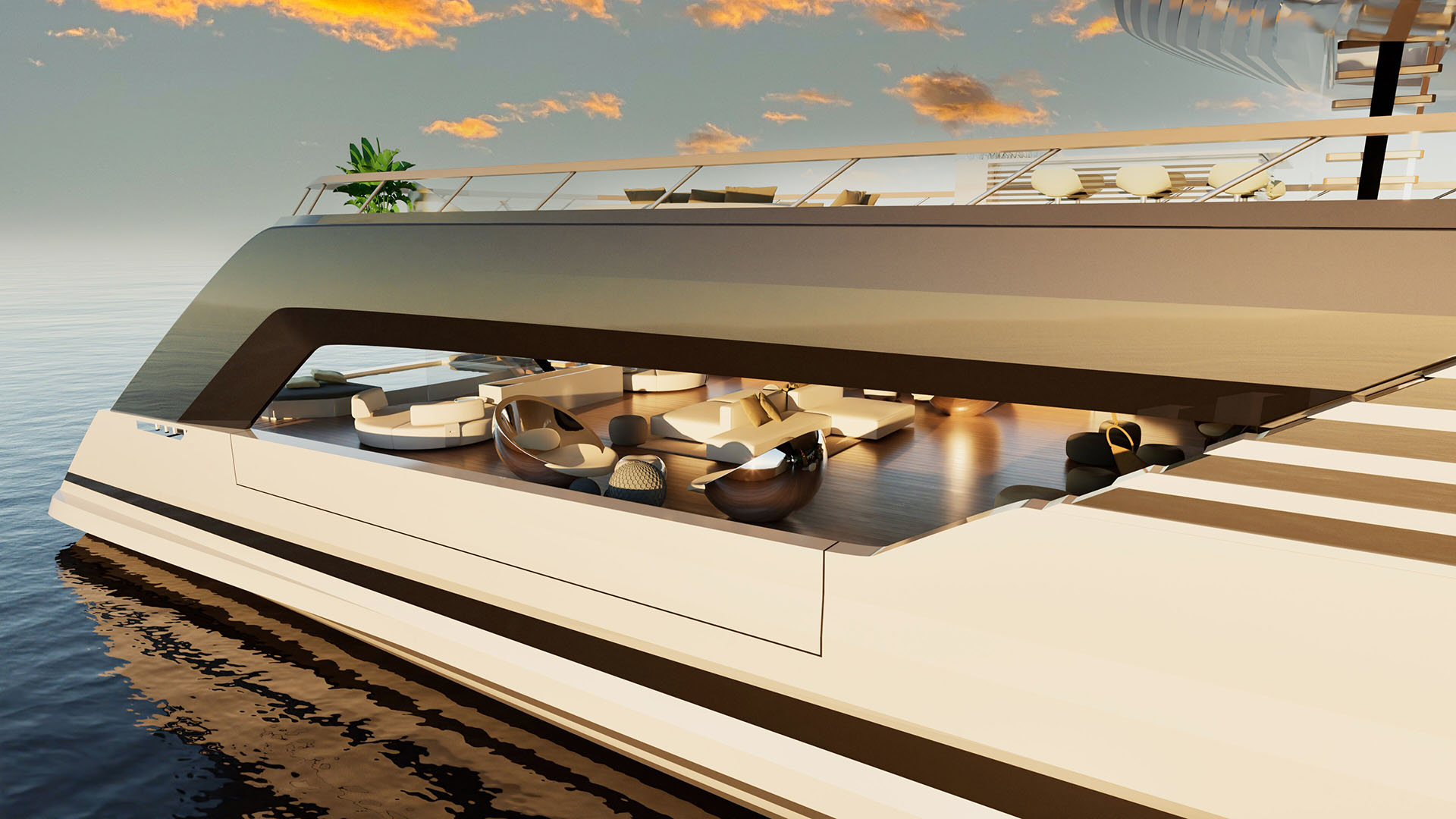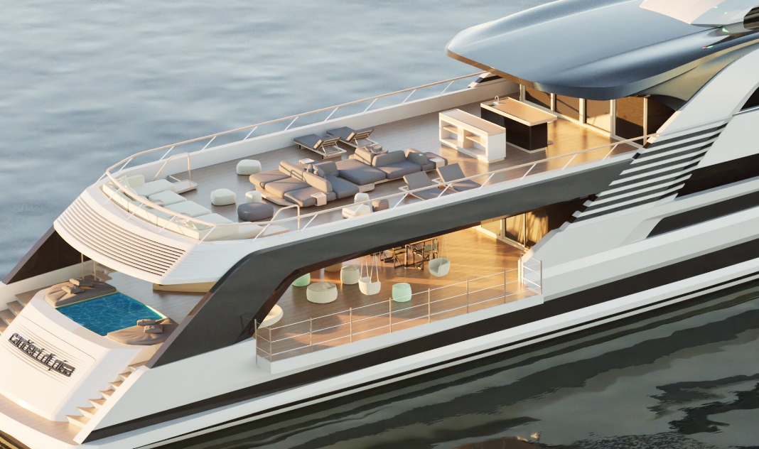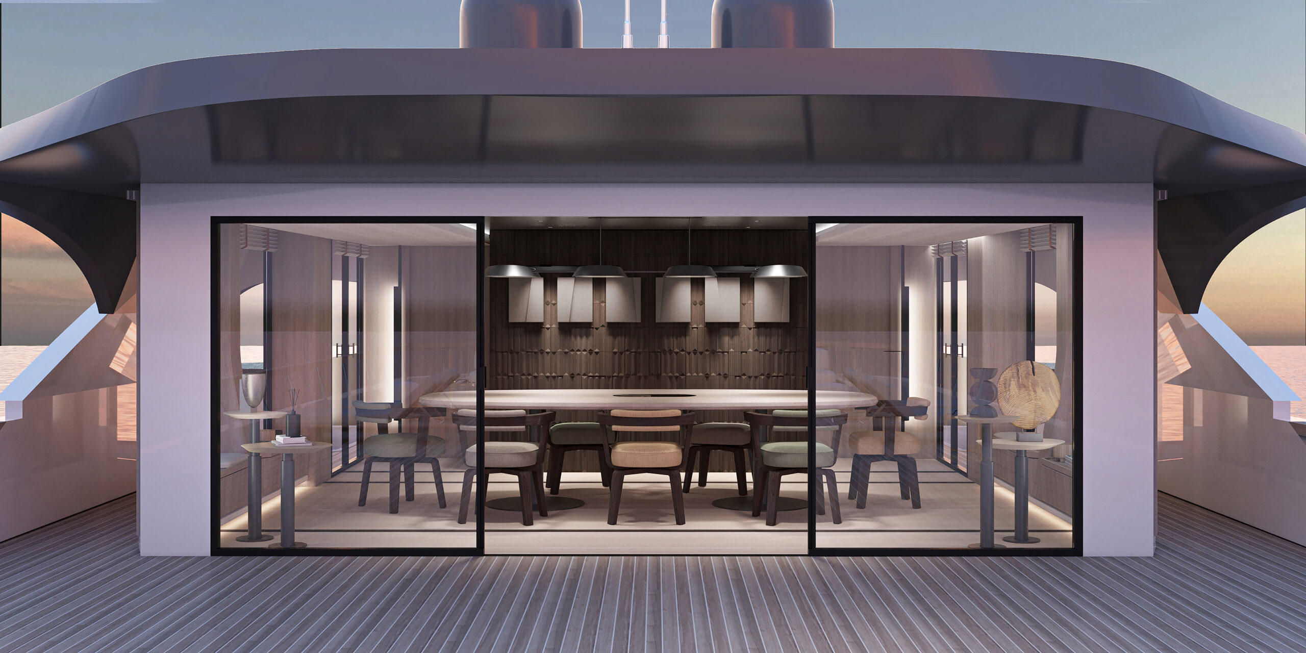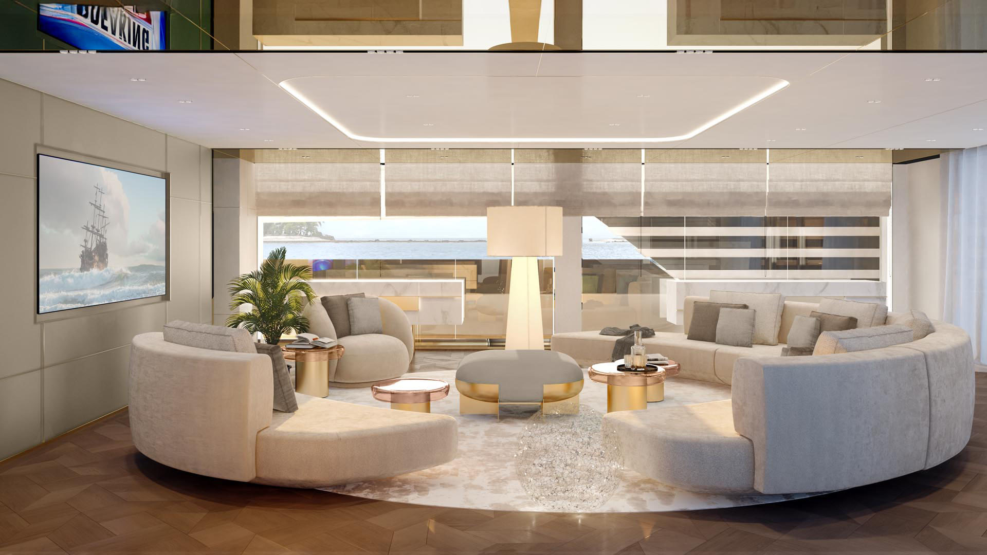 The upper and main decks showcase two large terraces overlooking the sea and communicating with each other.