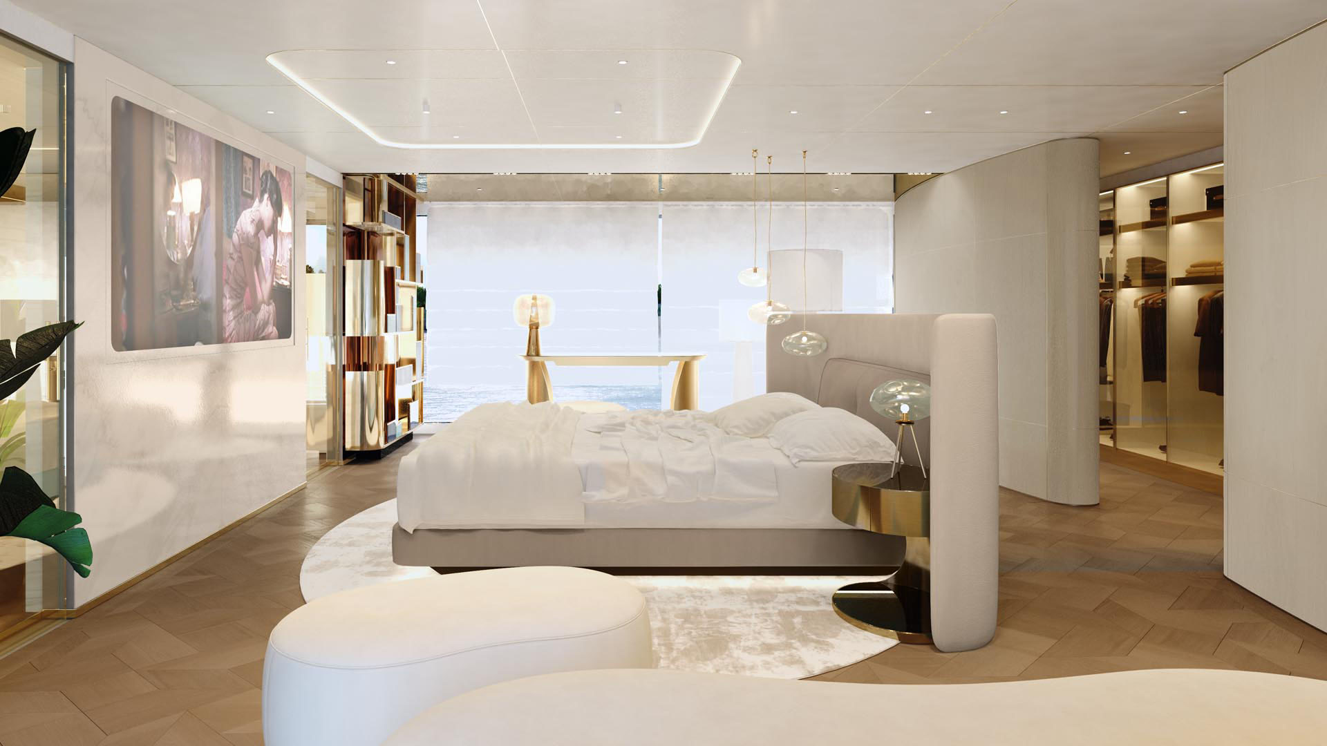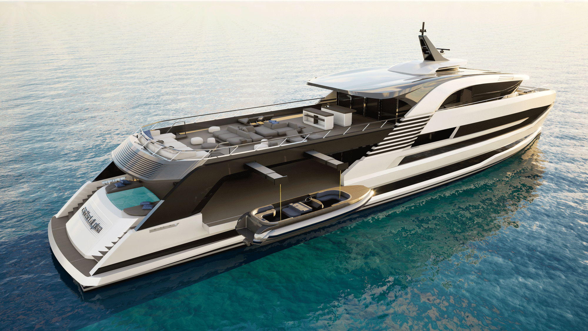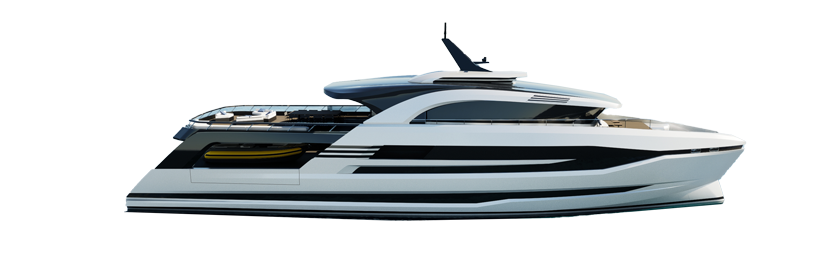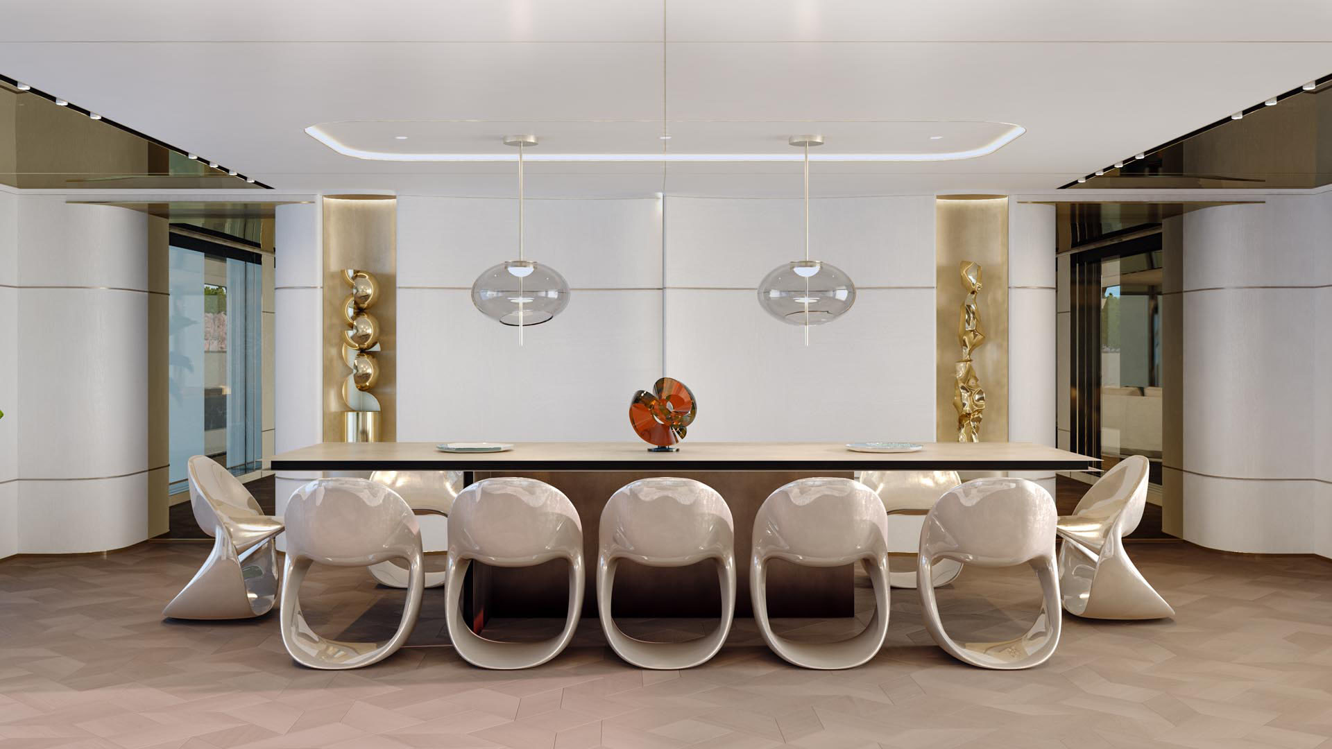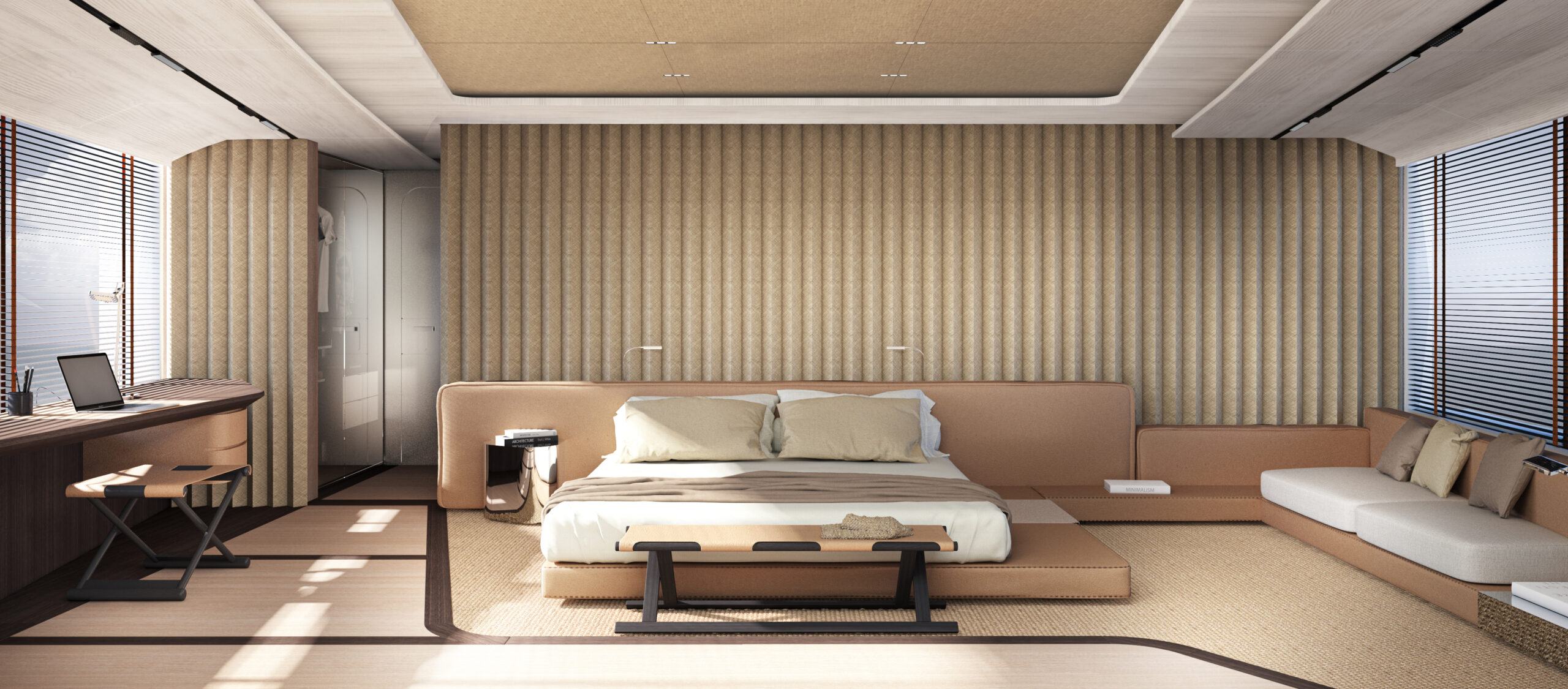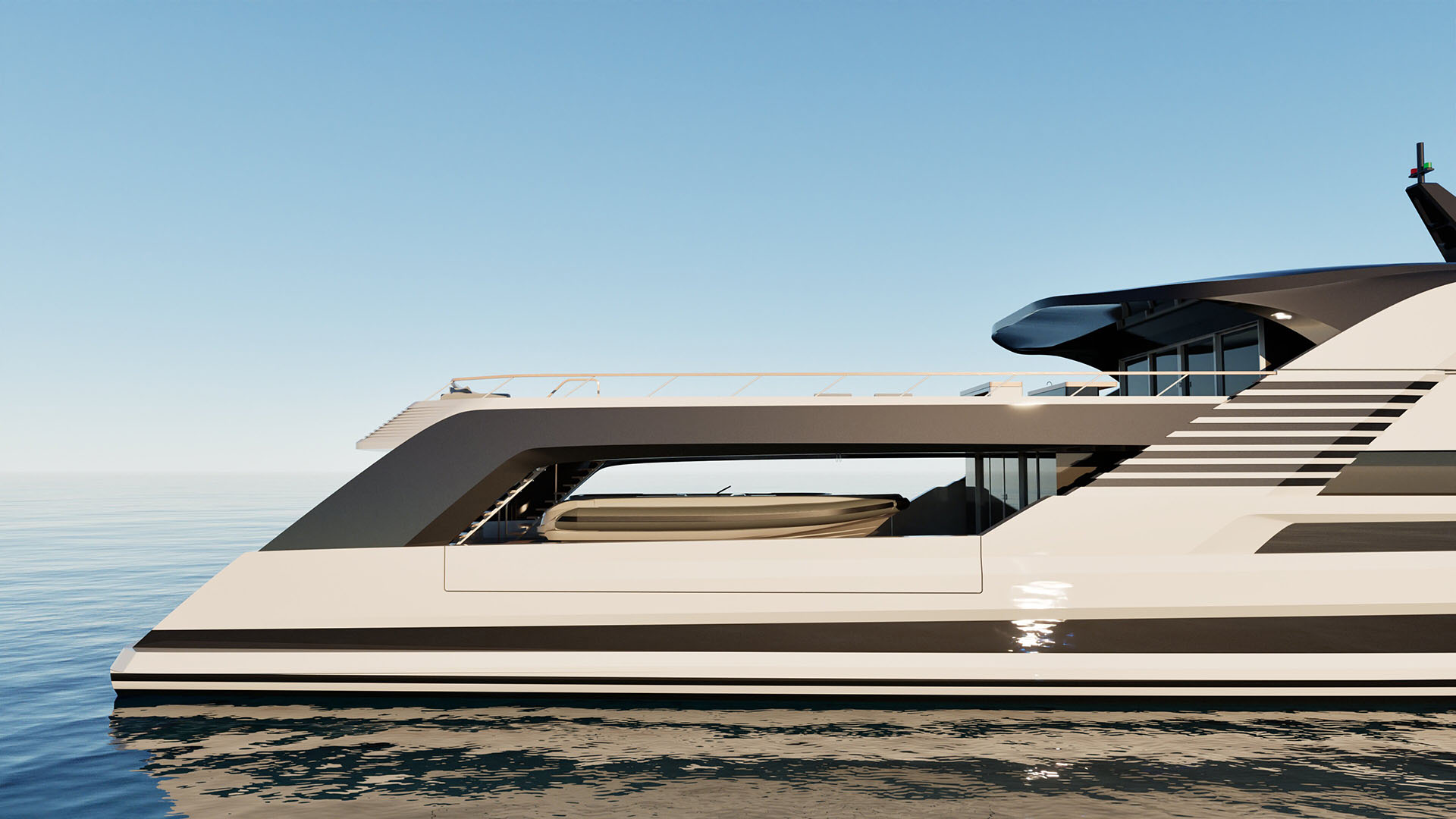 The upper and main decks showcase two large terraces overlooking the sea and communicating with each other.