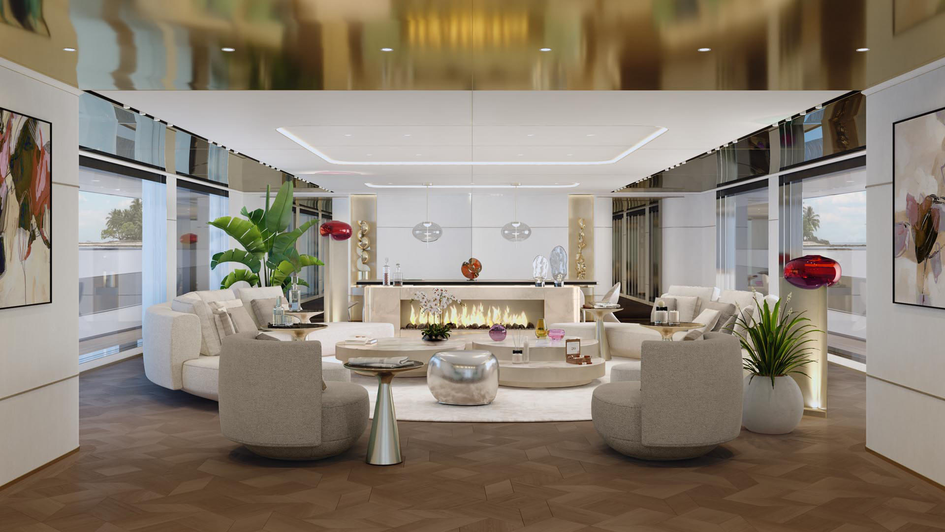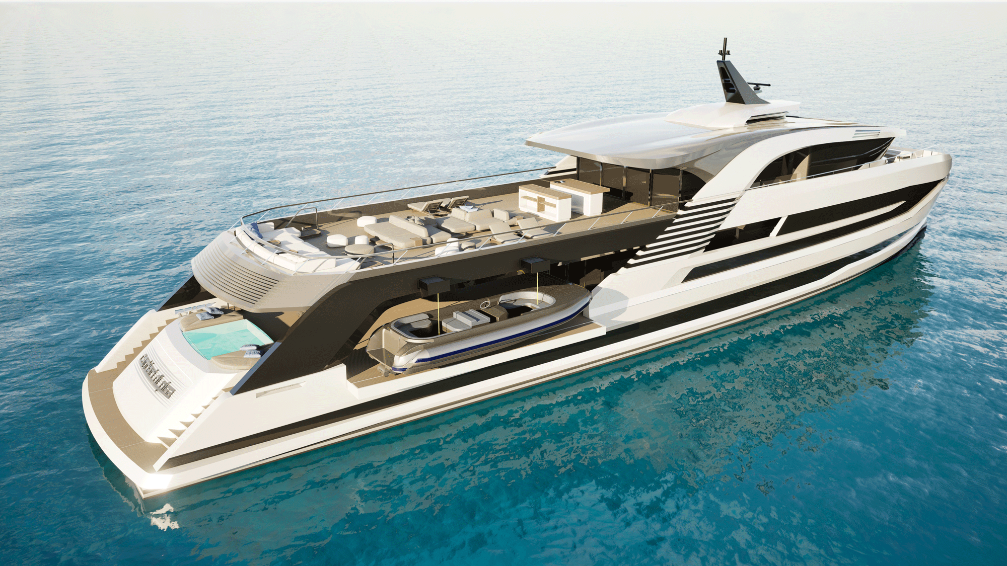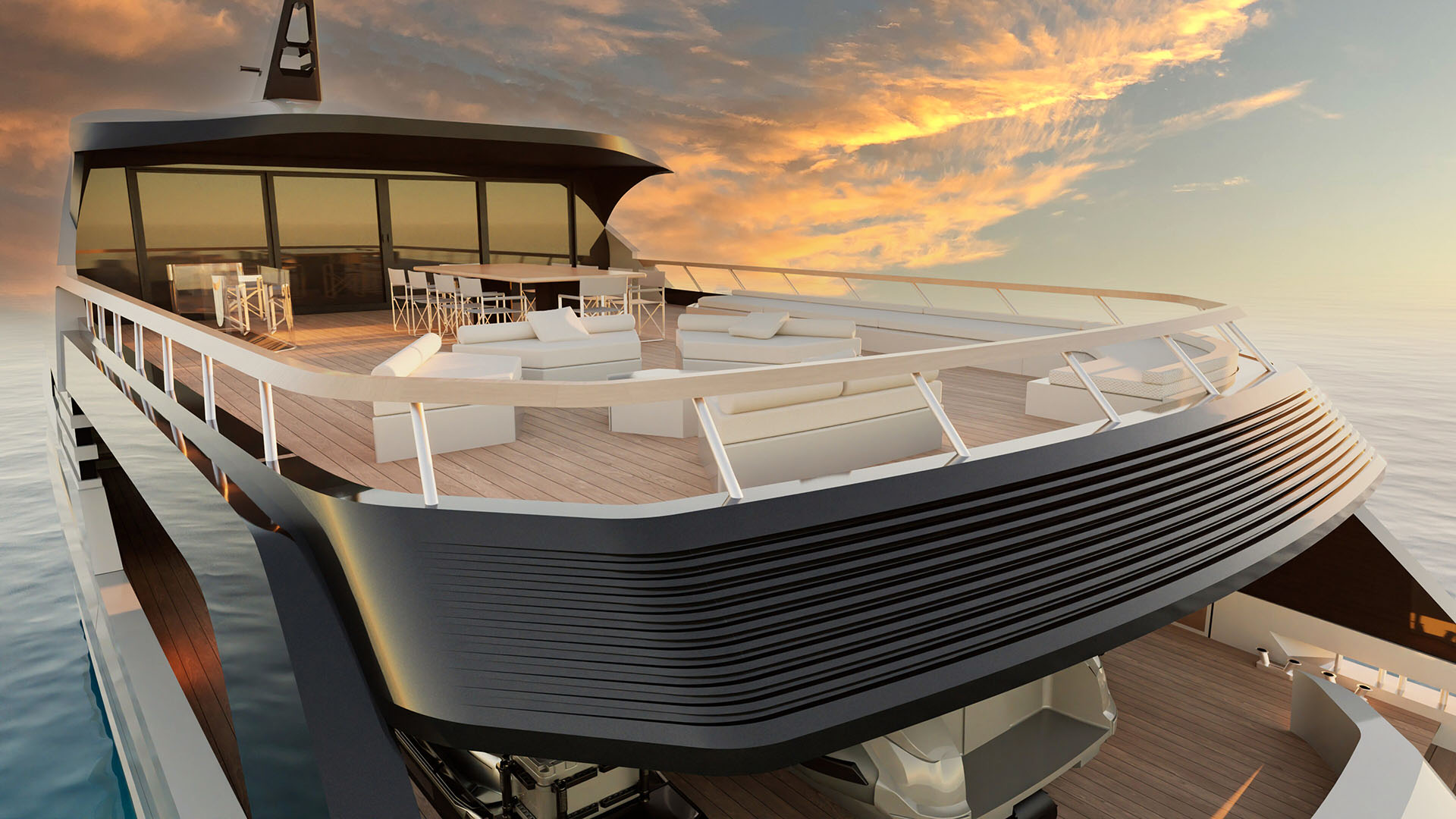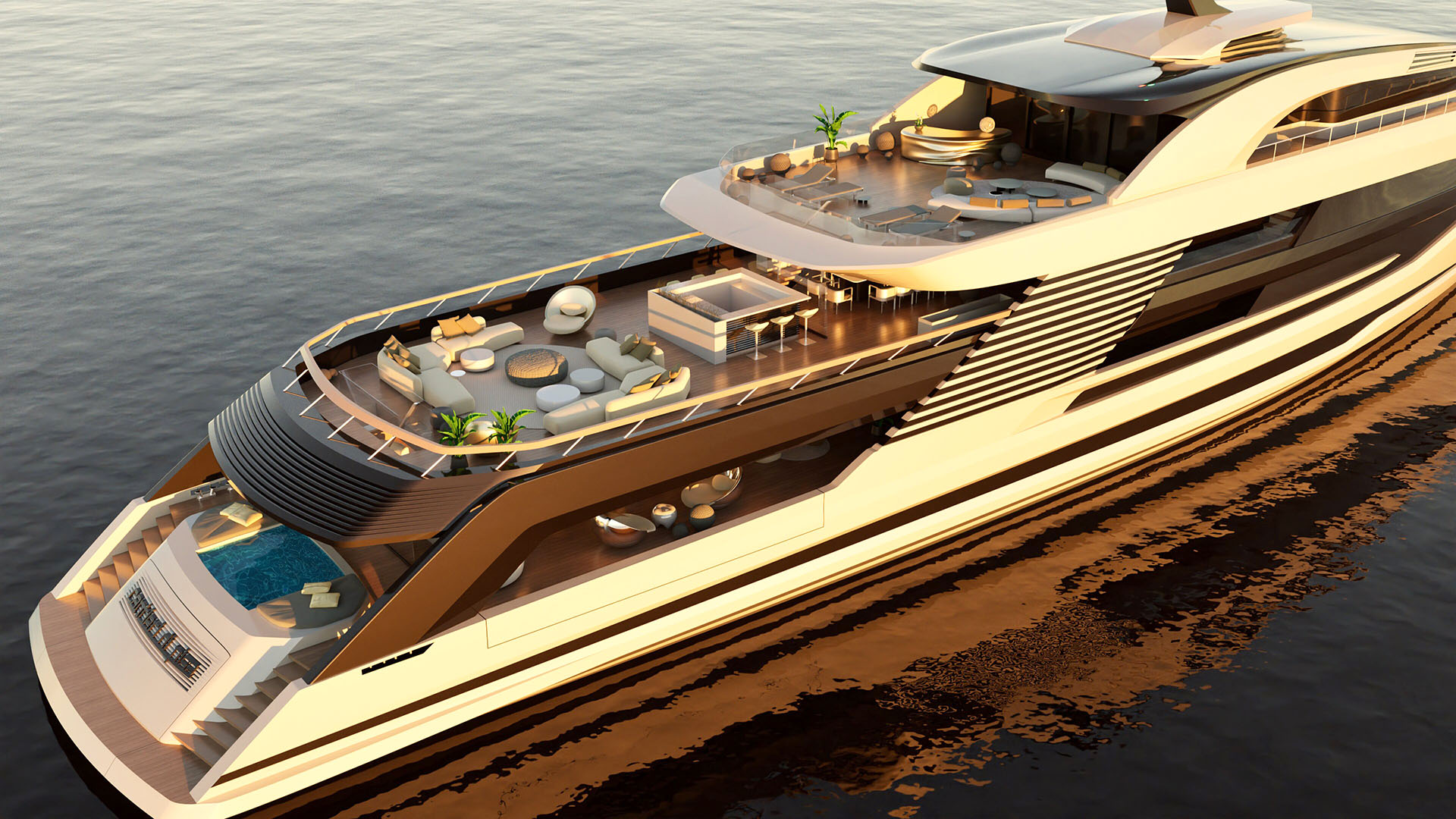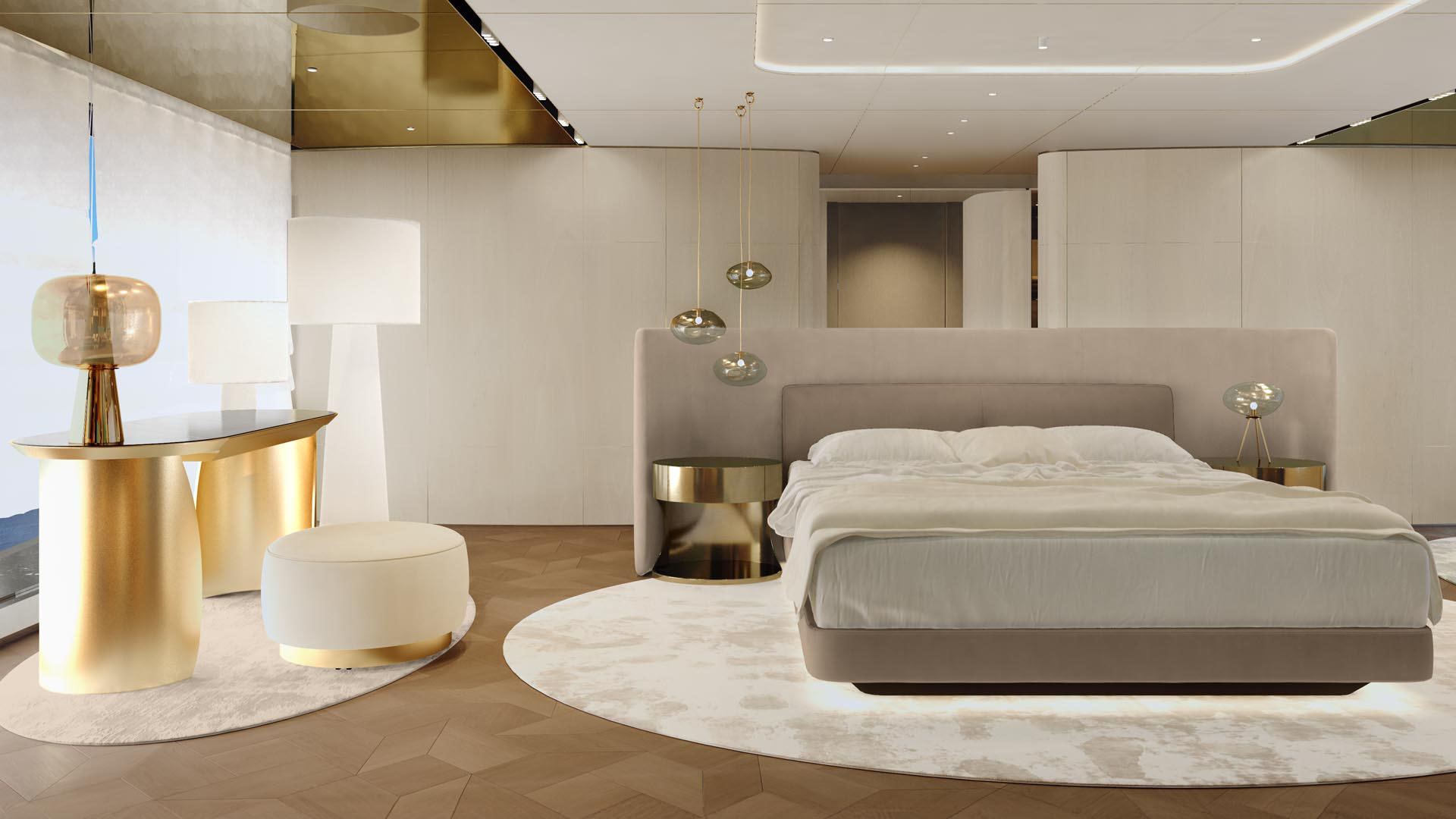 The upper and main decks showcase two large terraces overlooking the sea and communicating with each other.