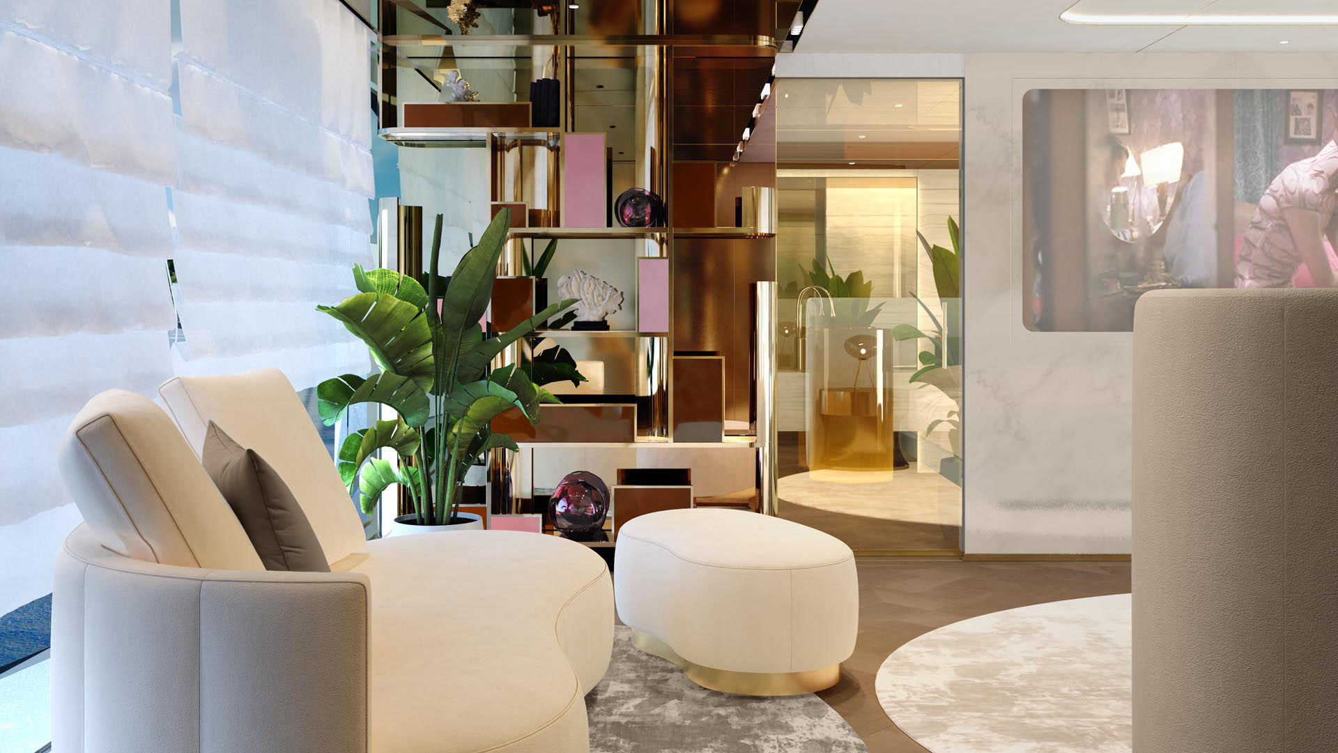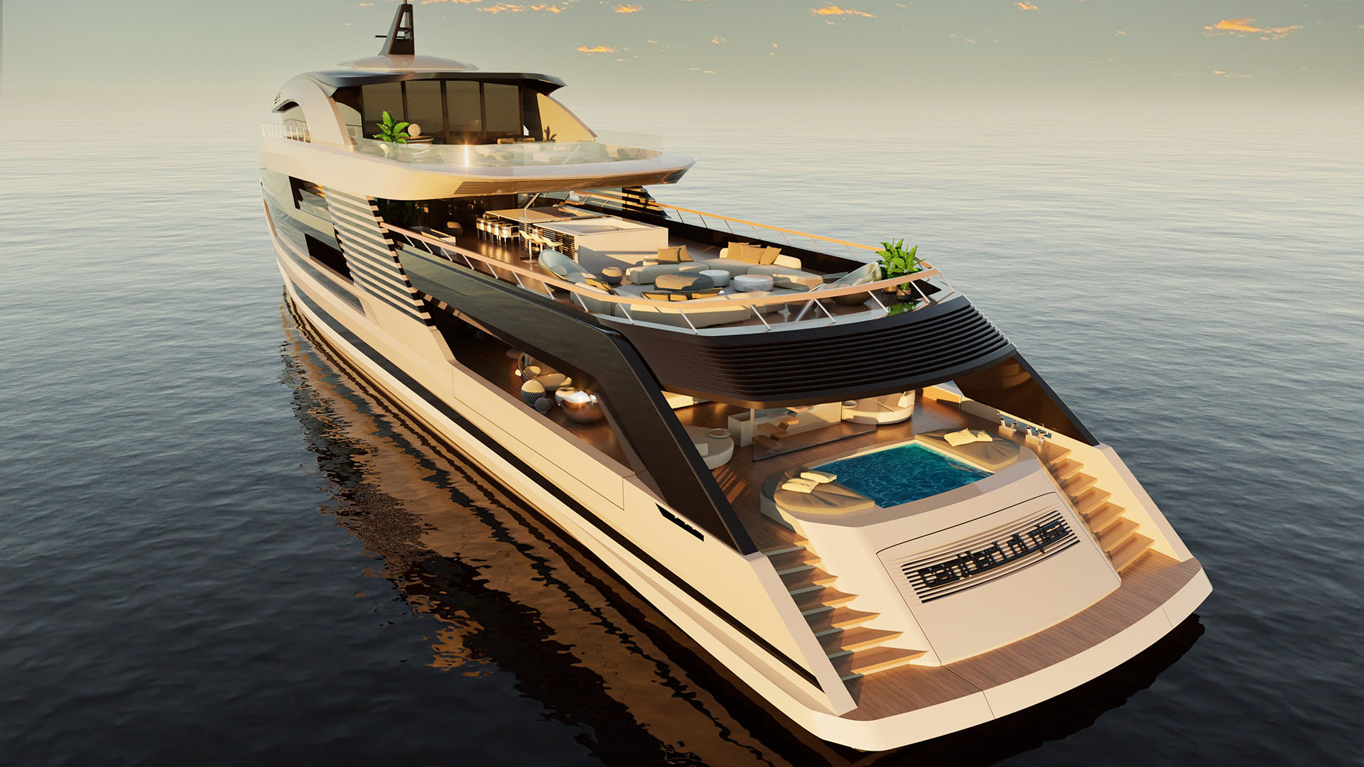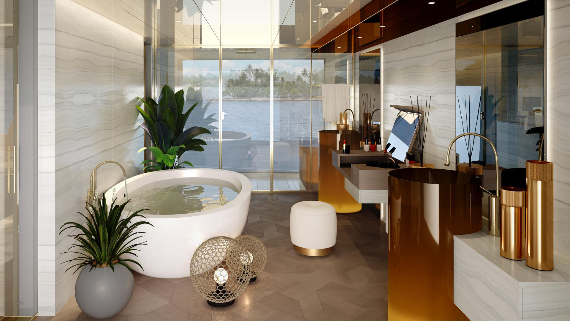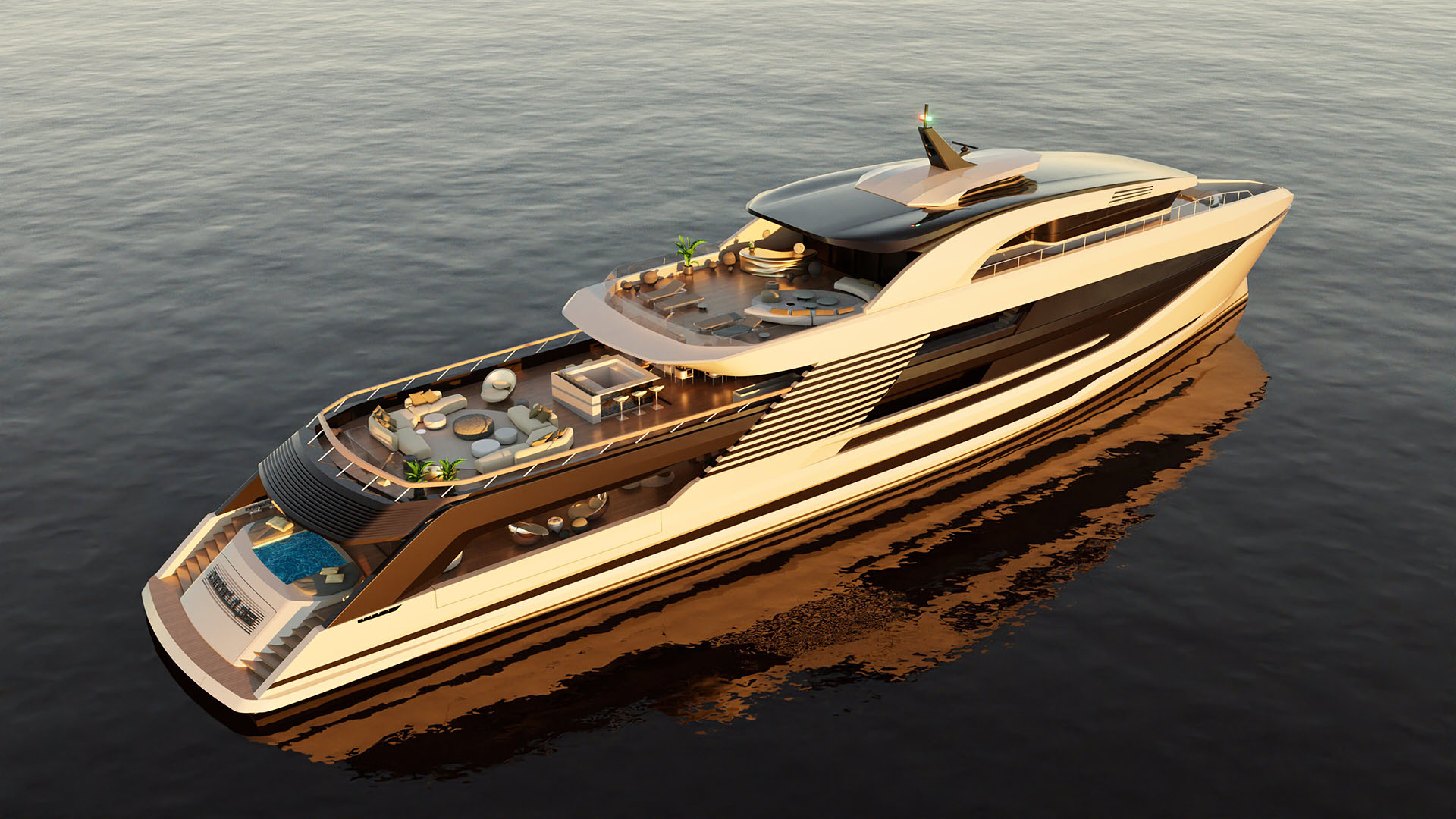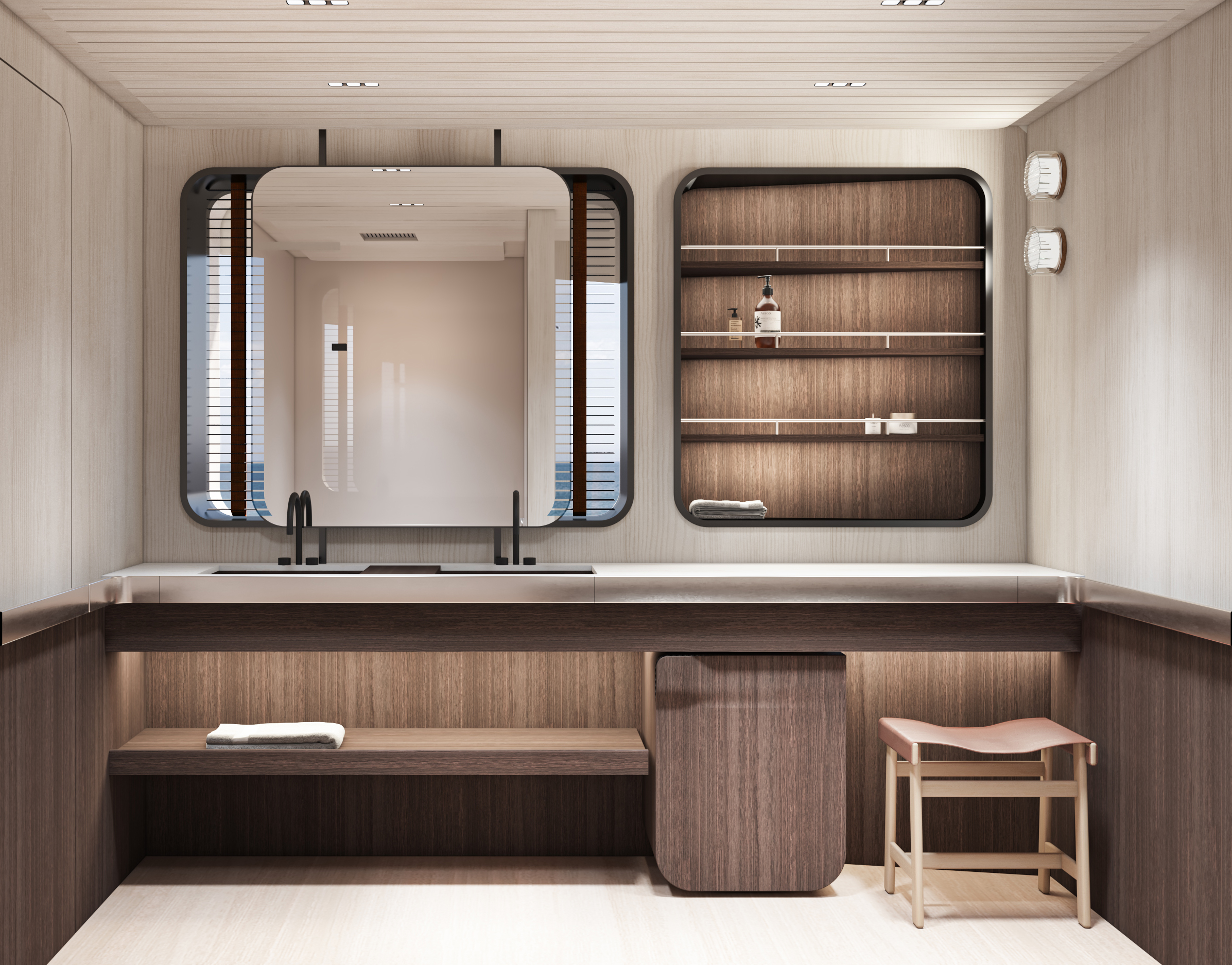 The upper and main decks showcase two large terraces overlooking the sea and communicating with each other.